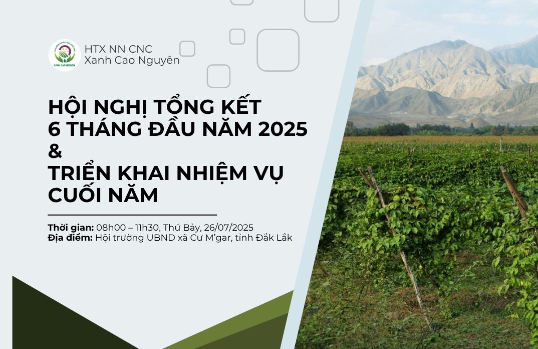 Sáng ngày 26/07/2025, tại UBND xã Cư M’gar, tỉnh Đắk Lắk, Hợp tác xã Nông nghiệp Công nghệ cao Xanh Cao Nguyên đã tổ chức thành công Hội nghị Sơ kết 6 tháng đầu năm 2025 và triển khai phương hướng nhiệm vụ 6 tháng cuối năm. Hội nghị...