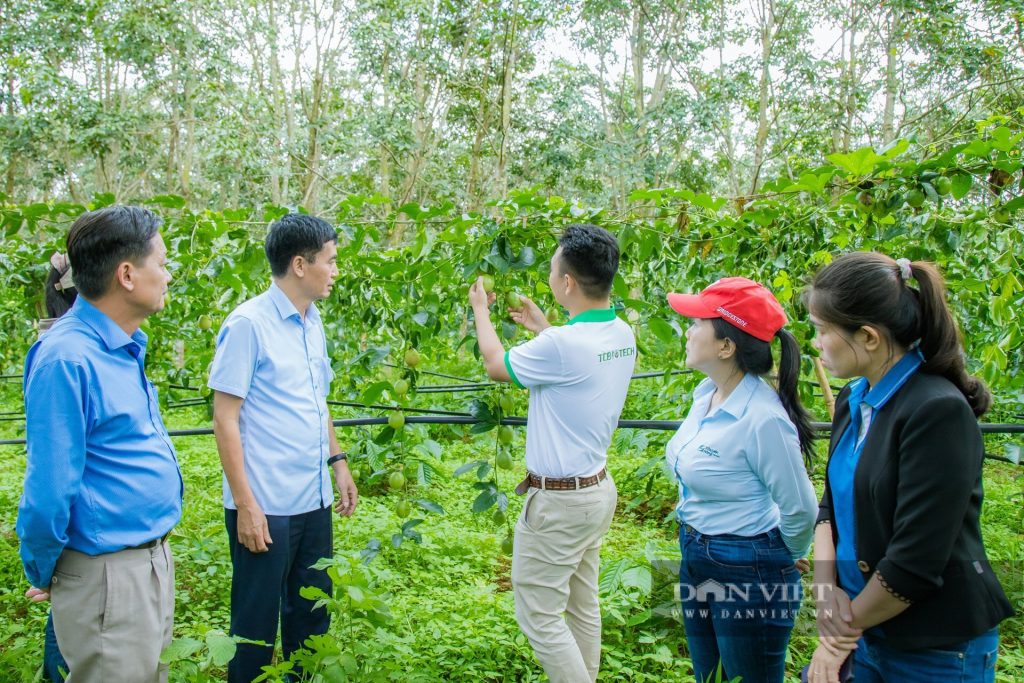 Ông Hoàng Văn Hồng (thứ 2 từ bên trái ảnh qua), Phó Giám đốc Trung tâm Khuyến nông Quốc gia thăm quan vườn chanh dây tại xã Ea Tul, tỉnh Đắk Lắk.